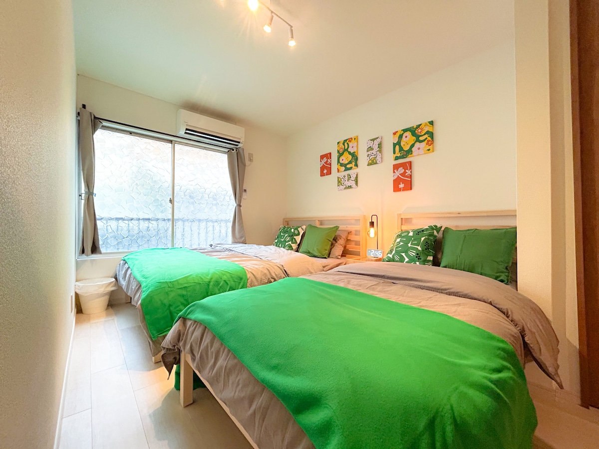 川House今里•双床房•地铁千日前线步行10分钟•近铁难波线7分钟•电车到大阪城公园便利•最大4名