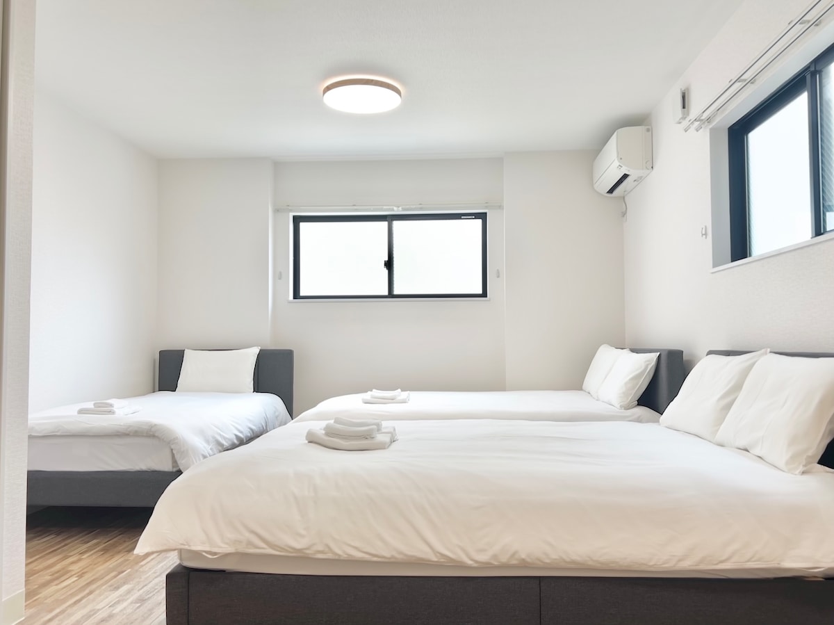 近鉄今里駅から徒歩3分、大阪メトロ新深江駅から徒歩6分の平屋の一軒家です。 上り下りが必要ありませんのでご年配の方々にもお勧めです。 閑静な住宅街にあるので落ち着いた時間を過ごしていただけます。 難波まで20分、日本橋まで15分。奈良へも1時間以内で行けますので大変便利に使用いただけるかと思います。 全自動洗濯機と専用乾燥機の両方が完備されてますので、長期の滞在でも快適にご利用いただけます。 ベッドはセミダブル x 1、シングル x 6なので最大8名までご利用いただけますが、推奨人数は6名です。 【設備】 ・無料Wi-Fi ・6人がけテーブル1台、椅子6脚、補助椅子2脚 ・衣類乾燥機   【洗面設備】 ・シャンプー、リンス、ボディソープ ・タオル8枚、バスタオル8枚 合計 ・洗濯機 ・ドライヤー 【キッチン設備】 ・お皿8枚 ・グラス8個 ・フライパン・鍋 ・包丁・まな板 その他の特記事項 ・15~21時チェックイン ・10時チェックアウト ・パーティーは禁止です ・隣の家と壁が繋がっているため、22時以降は静かにお過ごしください。 ・室内、玄関先は完全禁煙です。