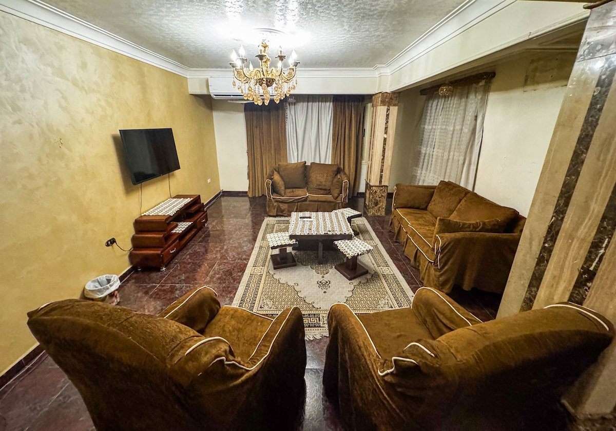 Relax with the family at this peaceful place in mohandsien .. main Sudan street , luxury apartment down town loft The house location is 5 minute away from al kitkat metro station line 3 and 7 minute away from el behoth metro station line 2 of cairo metro 11 minutes away from el tahrir Square . 19 minutes away from giza pyramids . 20 minutes away from grand egyptian museum 34 minutes away from cairo International Airport 36 minutes away from sphinx International airport . Waiting you 😉