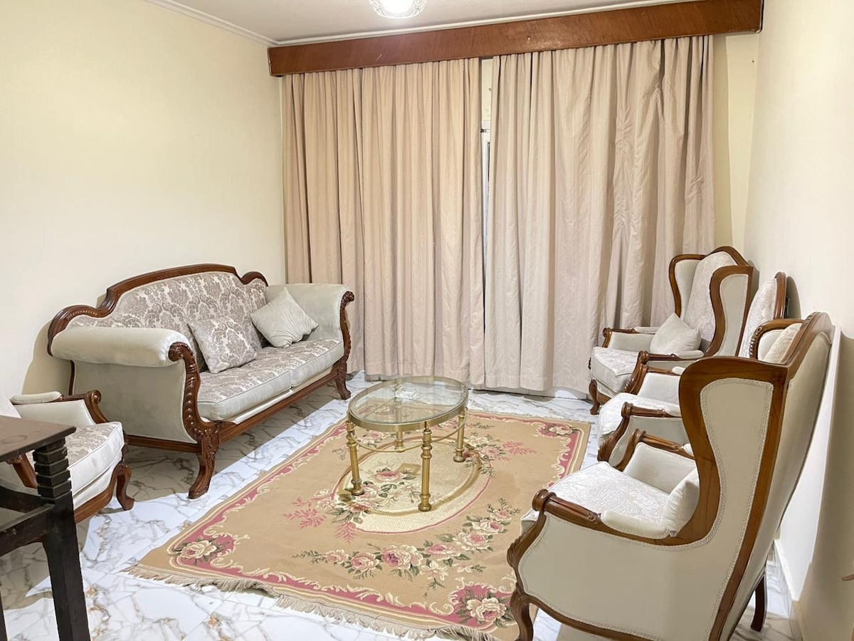 Welcome to Your Cozy Central Cairo Escape Perfectly nestled in the heart of the city, this inviting three-bedroom, two-bath retreat sleeps up to 7 guests comfortably with five thoughtfully arranged beds. Whether you're a family craving space and safety, or a group of friends looking for a warm, central hub — this home was designed to offer comfort, connection, and convenience. Stretch out. Settle in. Feel the heartbeat of Cairo from a space that feels like yours.