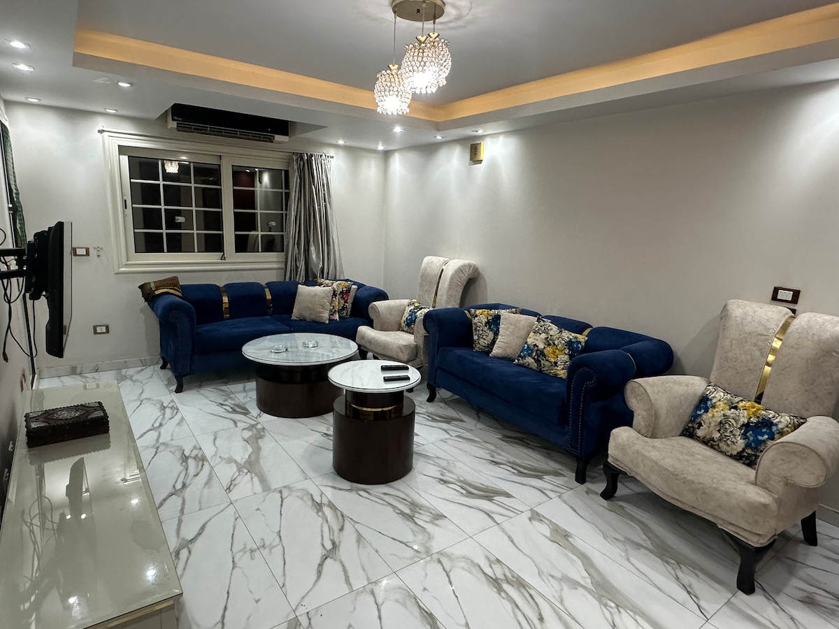 Relax with the family at this peaceful place in mohandsien .. main Sudan street , luxury apartment down town loft The house location is 5 minute away from al kitkat metro station line 3 and 7 minute away from el behoth metro station line 2 of cairo metro 11 minutes away from el tahrir Square . 19 minutes away from giza pyramids . 20 minutes away from grand egyptian museum 34 minutes away from cairo International Airport 36 minutes away from sphinx International airport . Waiting you 😉