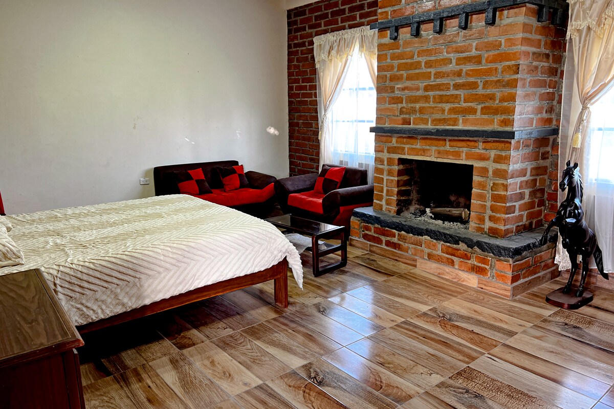 Casa Rose Cottage is a separate chalet at three star hotel Hosteria Rose Cottage. Sometimes known as our honeymoon suite, it has a four poster double bed downstairs, and a single bed upstairs. It has fireplace and a shower and bathroom. Guests staying can use the facilities of the hotel including restaurant,large library, tennis court, children's playground. The hotel also has a jacuzzi, which is free to use for guests staying at least 2 nights, otherwise costs $15 (pre-booking req'd).