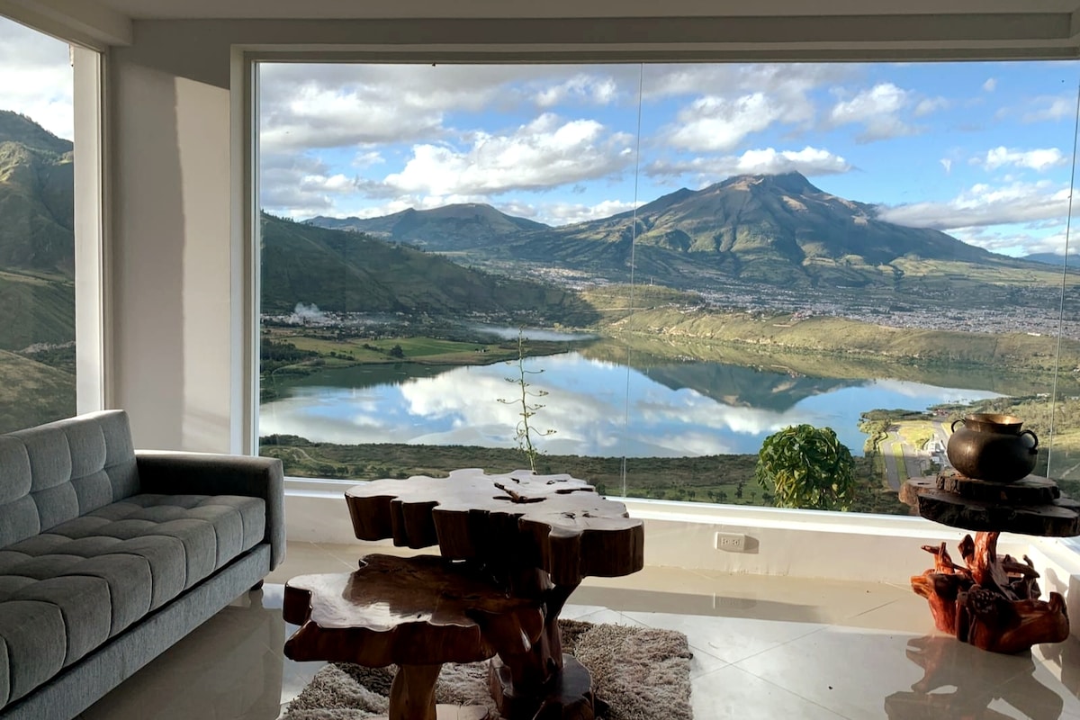 Amazing cottage with incredible views of Lake Yahuarcocha, the city of Ibarra and and the city’s famous race track. If you’re looking for relaxation, comfort and beauty, you’re in luck! Look no further. Our cozy but ample impeccable home can accommodate 6 with the possibility of an air mattress for 2 more. Come create unforgettable and unique memories with your family.