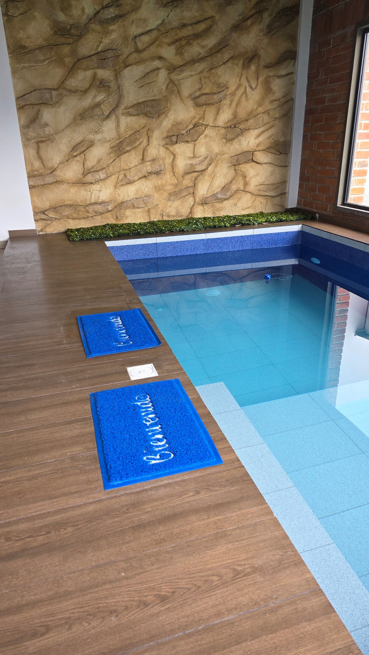Te damos la bienvenida a tu exclusivo alojamiento ! Estamos ubicados frente al pulmón de la ciudad , a pocos metros del Río Tahuando y a 15 minutos del centro de Ibarra . Pueden hospedarse hasta 8 personas y disfrutar de hermosos jardines , aire puro y vistas privilegiadas , además una piscina temperada con paneles solares , turco,jacuzzi, área de parrillada, cocina , dos comedores , área de baile , fogata , vestidores , duchas , baños y gimnasio . Es el lugar que mereces disfrutar !