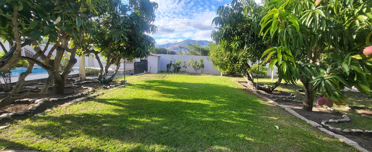 Bienvenidos a nuestro hogar! Mi familia y yo le llamamos "El paraíso", porque si el cielo existe, estamos seguros que debe darte la paz y la tranquilidad que sientes en este lugar . En un clima privilegiado, lejos de la ciudad, rodeado de montañas, un cielo azul y donde el sol abriga en todo su esplendor. Podrás relajarte y romper la rutina lejos del día a día y el ruido de la ciudad en una casa acogedora y con todo lo que necesitas para pasar un lindo tiempo en familia y amigos.