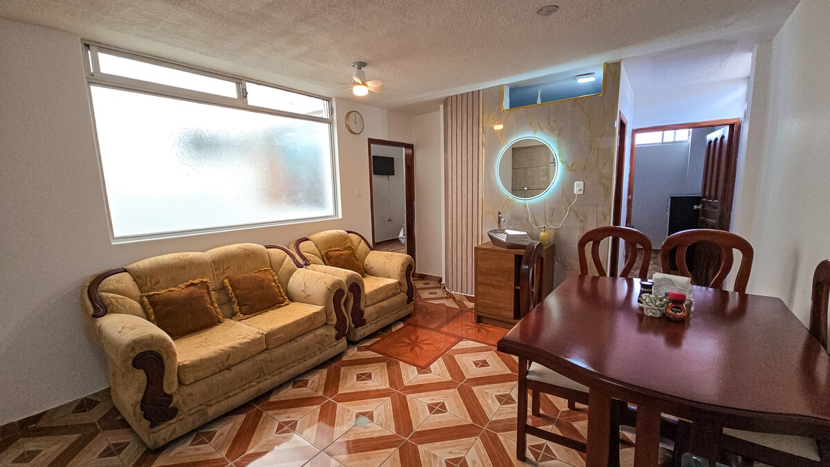 Disfruta de un departamento moderno y acogedor en el corazón de Ibarra, perfecto para descansar o trabajar con todas las comodidades que necesitas. Ideal para parejas, familias pequeñas o viajeros de trabajo que buscan un lugar tranquilo, elegante y con excelente ubicación.