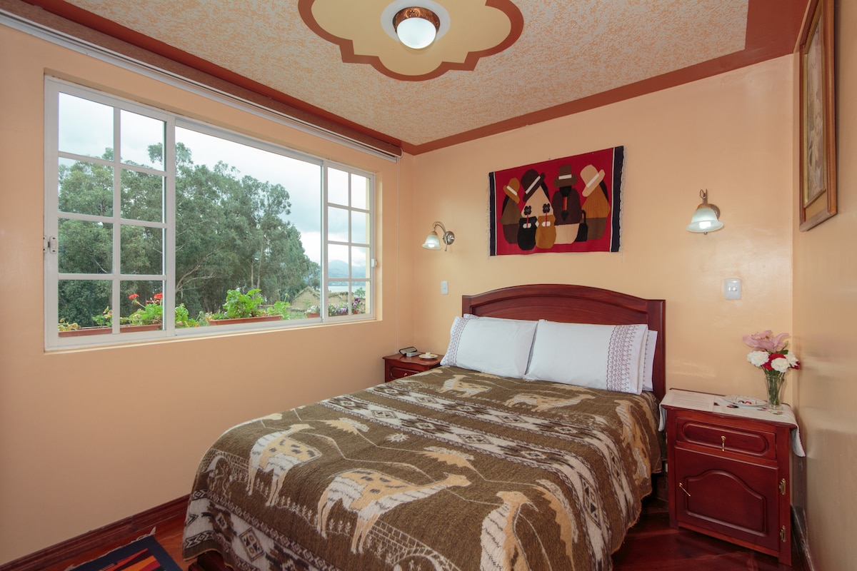 Bienvenidos a Aly Wasi, tu hogar en Cotacachi. Disfruta de un departamento compartido con 2 habitaciones privadas, sala, cocina, comedor, un baño completo y un medio baño. Accede a una terraza compartida con vista a los volcanes Mama Cotacachi y Taita Imbabura. Ubicado en el centro, cerca de mercados, parques y transporte. Un espacio ideal para descansar y explorar. ¡Reserva ahora y vive una experiencia única!
