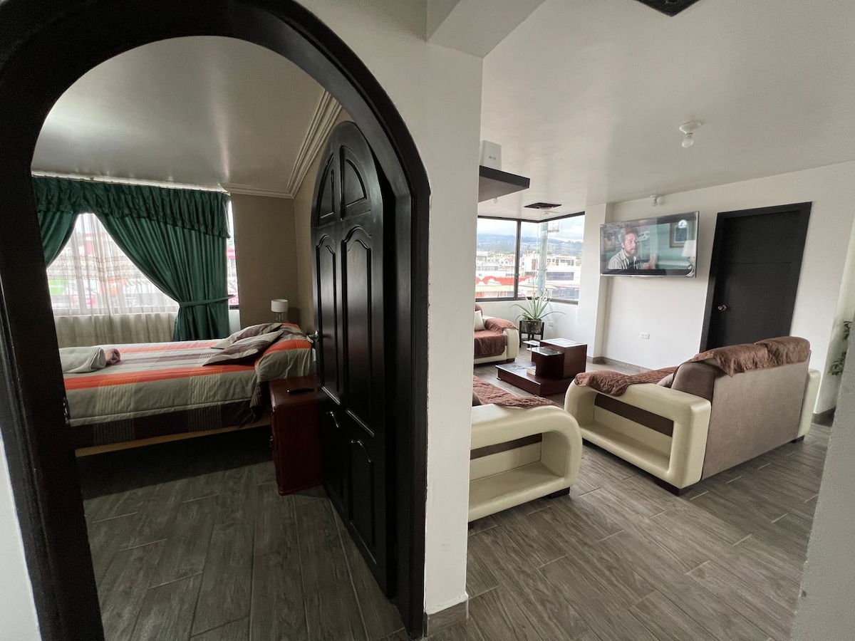 Disfruta de un departamento moderno y acogedor en el corazón de Ibarra, perfecto para descansar o trabajar con todas las comodidades que necesitas. Ideal para parejas, familias pequeñas o viajeros de trabajo que buscan un lugar tranquilo, elegante y con excelente ubicación.