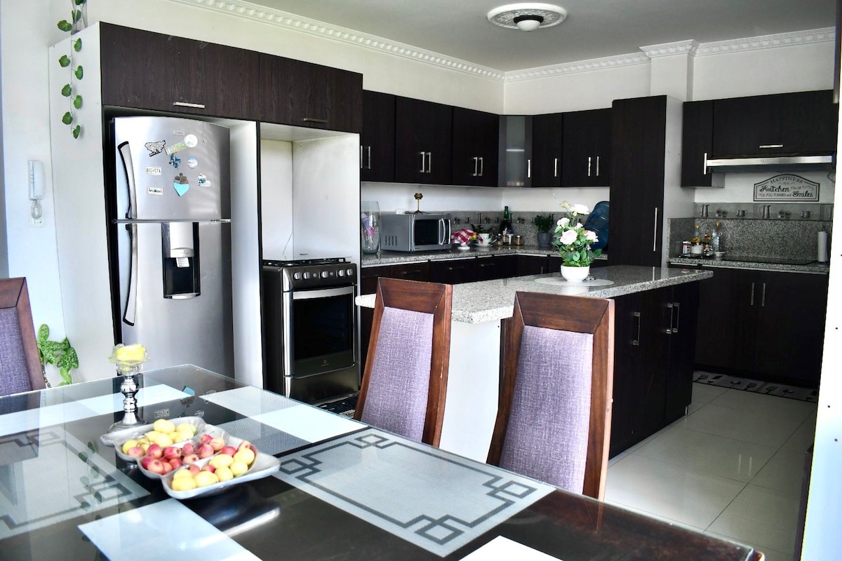 Hermosa y moderna casa grande con jacuzzi y estacionamiento privado. Un espacio tranquilo, ideal para el descanso, rodeado de áreas verdes y equipado con parrilla para disfrutar en familia o en pareja. 1er piso se encuentra todas las áreas sociales y suite privada con yacuzzi para huésped. 2do piso sin acceso zona ocupada por la anfitriona. Total independencia para tener privacidad.
