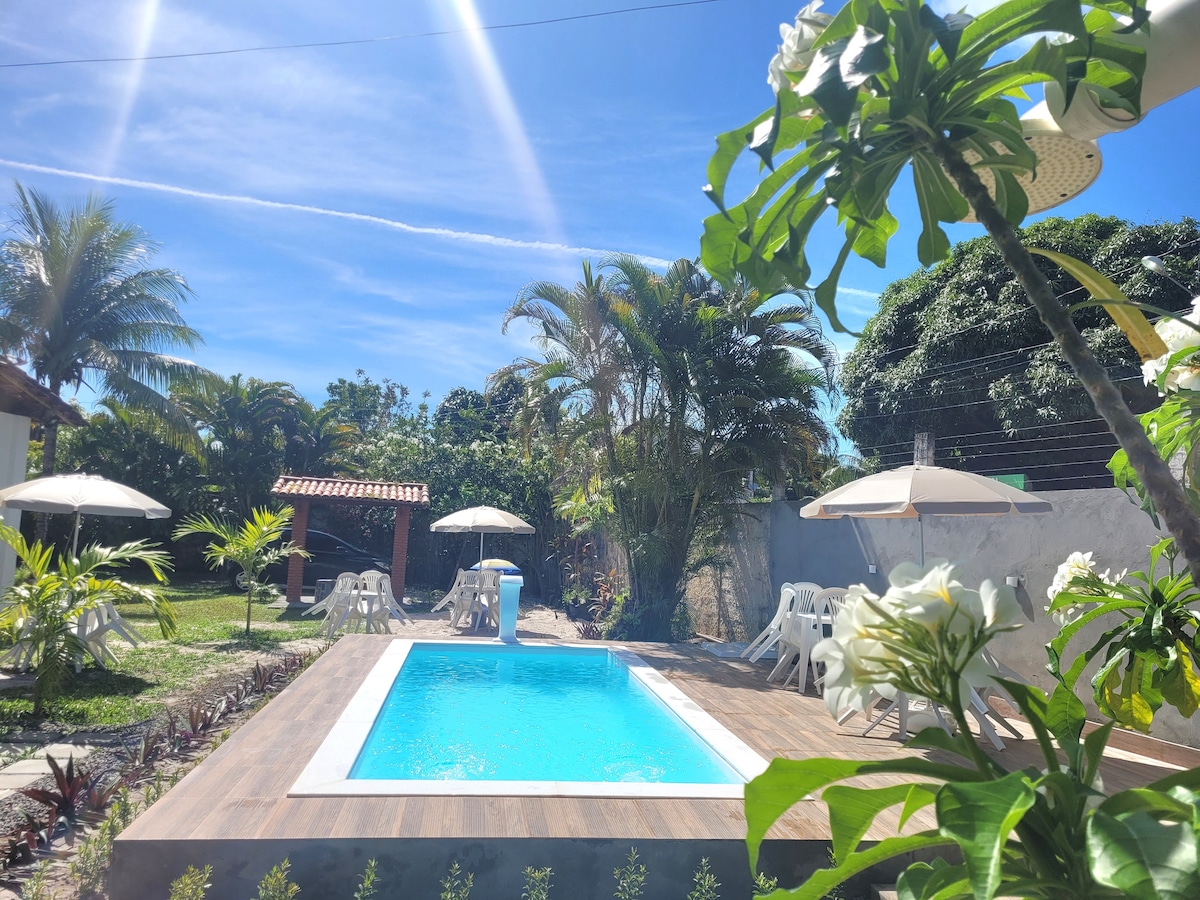 Um recanto super agradável, em condomínio fechado. Casa muito ventilada e aconchegante com: - 3 quartos com ar condicionado - 3 banheiros - Chuveirão - Grande área externa arborizada - Ampla varanda, churrasqueira, cervejeira - Piscina - Internet banda larga De carro fica a: 45 minutos de Salvador; 30 minutos do aeroporto; 5 minutos da paradisíaca praia do Canto do Sol; 10 min da praia de Guarajuba; 17 minutos da Praia do Forte. E muito próxima a outras belas localidades do Litoral Norte baiano.