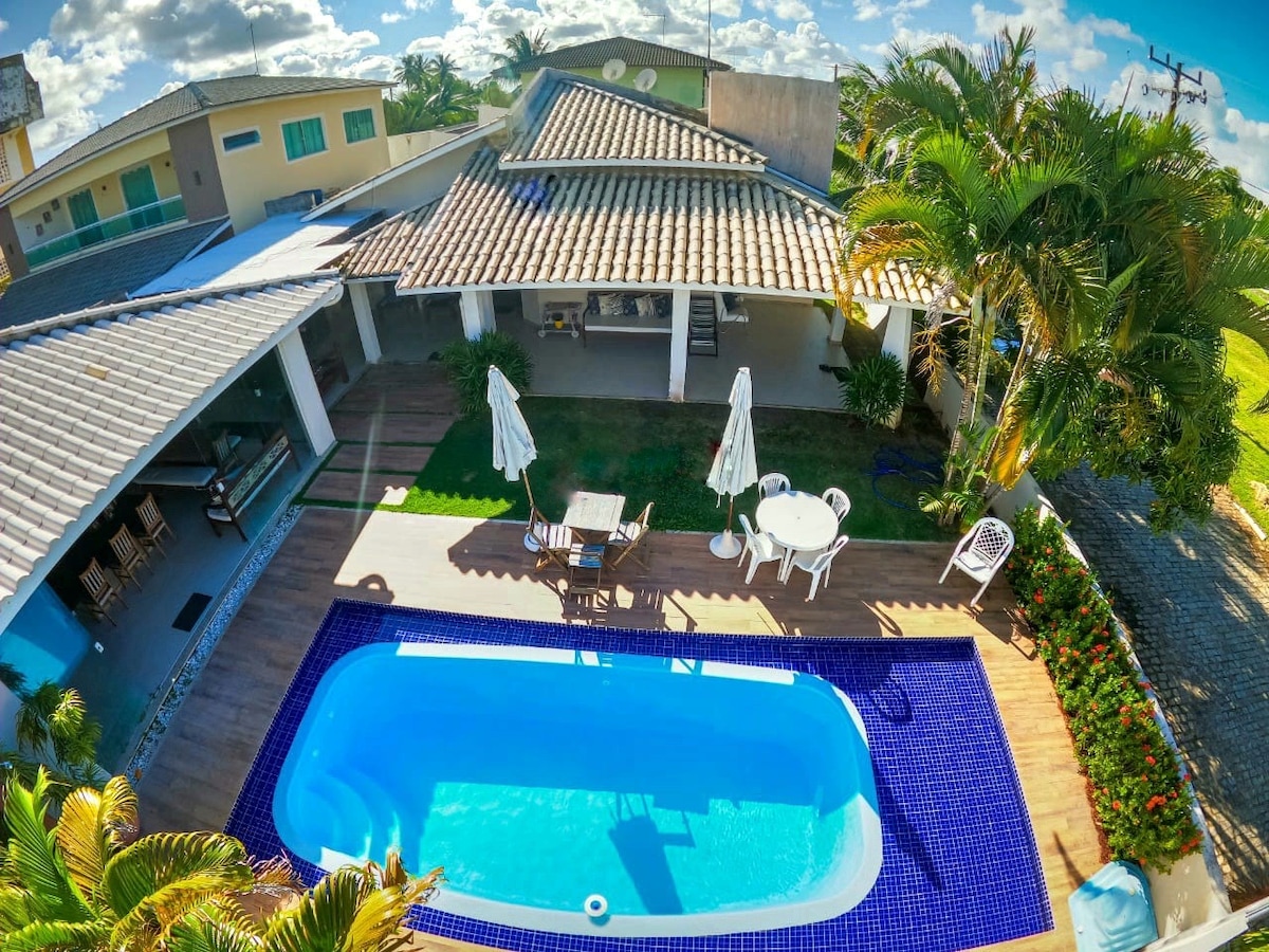 Um recanto super agradável, em condomínio fechado. Casa muito ventilada e aconchegante com: - 3 quartos com ar condicionado - 3 banheiros - Chuveirão - Grande área externa arborizada - Ampla varanda, churrasqueira, cervejeira - Piscina - Internet banda larga De carro fica a: 45 minutos de Salvador; 30 minutos do aeroporto; 5 minutos da paradisíaca praia do Canto do Sol; 10 min da praia de Guarajuba; 17 minutos da Praia do Forte. E muito próxima a outras belas localidades do Litoral Norte baiano.