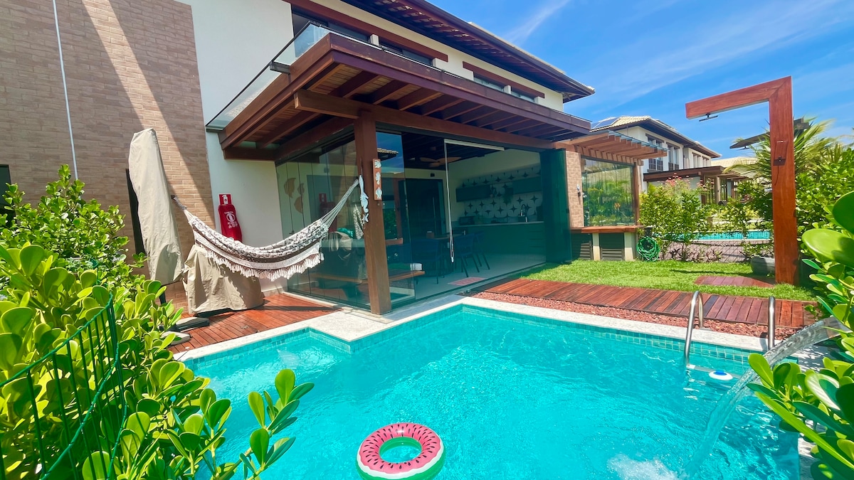 Apartamento lindíssimo tipo Vilage, duplex, totalmente decorado e equipado. Próximo a tudo! Vila de Imbassaí, rio, praia, restaurantes... O imóvel tem 03 quartos com 05 smart tvs, camas super confortáveis, 04 arcondicionados, 04 banheiros, PISCINA PRIVATIVA, varanada gourmet com cervejeira, churrasqueira, frigobar, purificador de agua gelada, copos stanleys e todos os equipamentos necessarios! 03 vagas de garagem próprias dentro do condomínio. No condominio também tem piscina, churrasqueira...