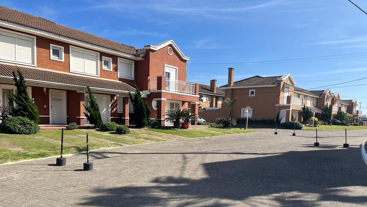 Casa nova localizada no condomínio Las Olas, na beira mar de Imbé, a cerca de 100 metros do calçadão. Possui: - ar-condicionado; - internet Wi-Fi (fibra óptica 100MB); - SKY; - Smart TV: Netflix, Fox, Telecine, Spotify; - Caixa som JBL bluetooth alta qualidade; - Eletrodomésticos última geração (geladeira, microondas, forno elétrico embutido, cafeteira, etc); - utensílios domésticos novos; - pátio privativo com deck, pergolado, rede e bancos para sentar; - quarto principal com vista para o mar;