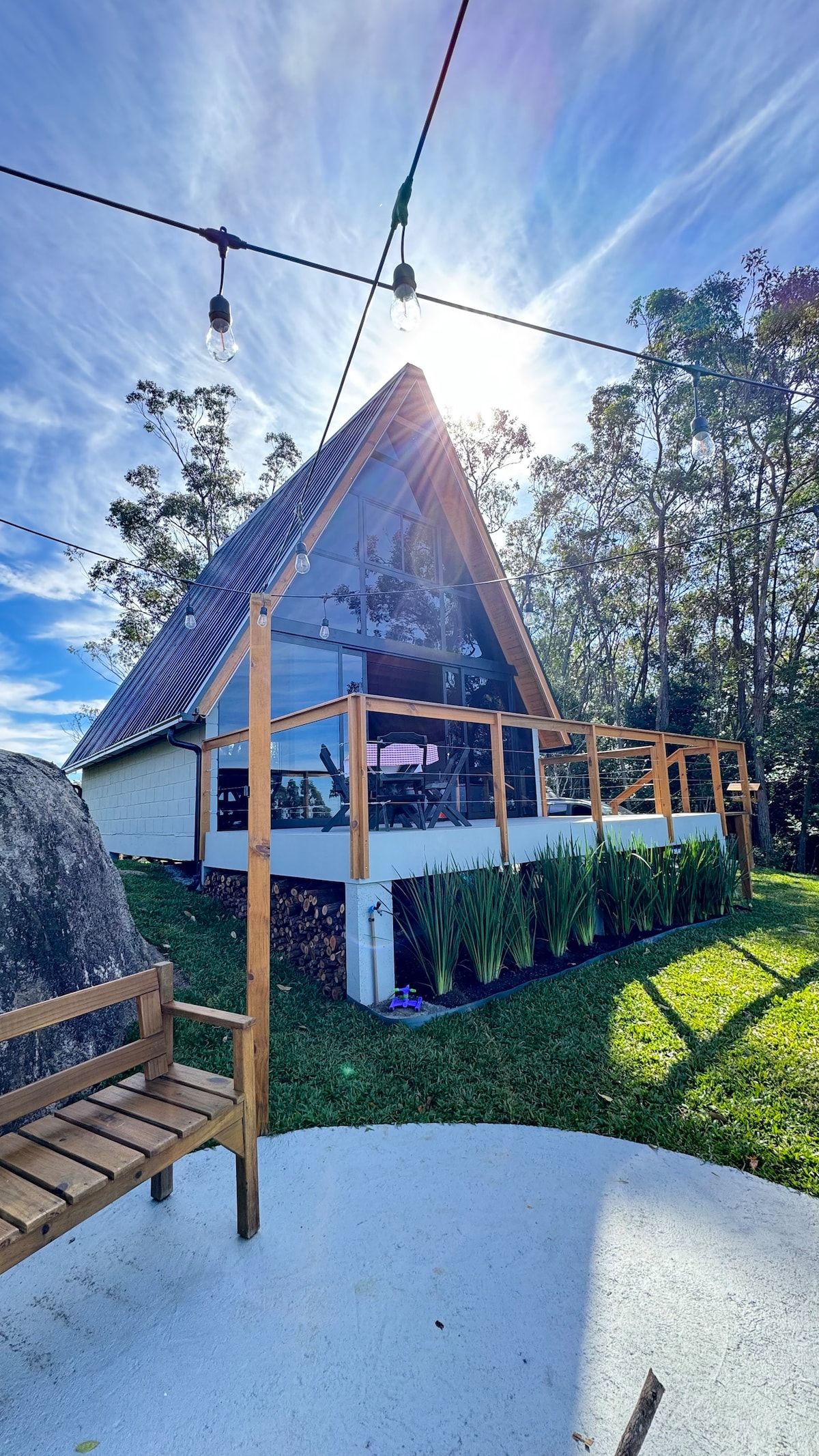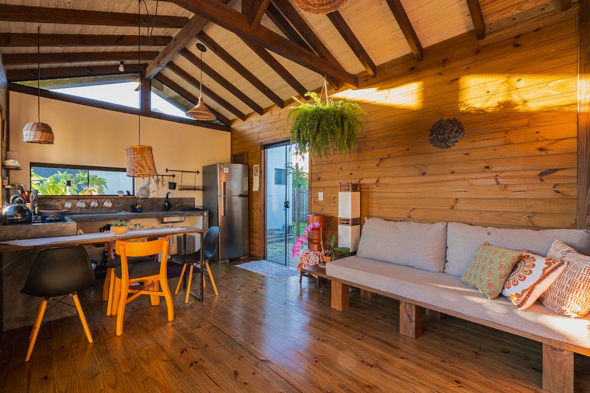 Cabana charmosa na Praia do Rosa A tão só 5 minutos a pé do Centrinho (350mtrs) e 10/15 minutos a pé da praia (800mtrs). Ar condicionado e TV smart, cozinha bem completa, micro-ondas, cafeteira, banheiro privativo, wifi, estac. privativo (sem custo). *Temos diferentes tipos de acomodações, cabanas superiores com vista ao vale, cabanas com vista ao jardim. Consulte a disponibilidade ao reservar. A pousada tem piscina e churrasqueira compartilhada. Moro no local para dicas ou assistência.