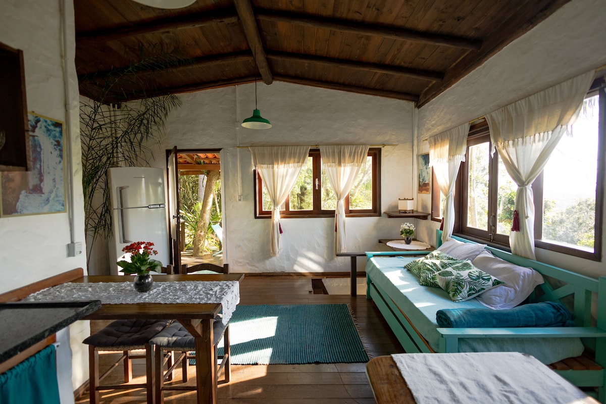 Um refúgio tranquilo , com uma vista privilegiada, nosso espaço foi pensado para oferecer uma conexão com a natureza . A cabana fica próxima das melhores praias da região, é super confortável e fica em local calmo e seguro . O acesso é super tranquilo para qualquer tipo de veículo mesmo em dias de chuva , com 1,2km de estrada de chão.