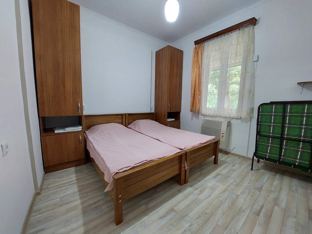 Комната для гостей находиться на первом этаже двухэтажного дома.Она очень уютная со всеми удобствами.Также есть маленький дворик с озеленением,где можно с удовольствием посидеть и выпить чашечку кофе.