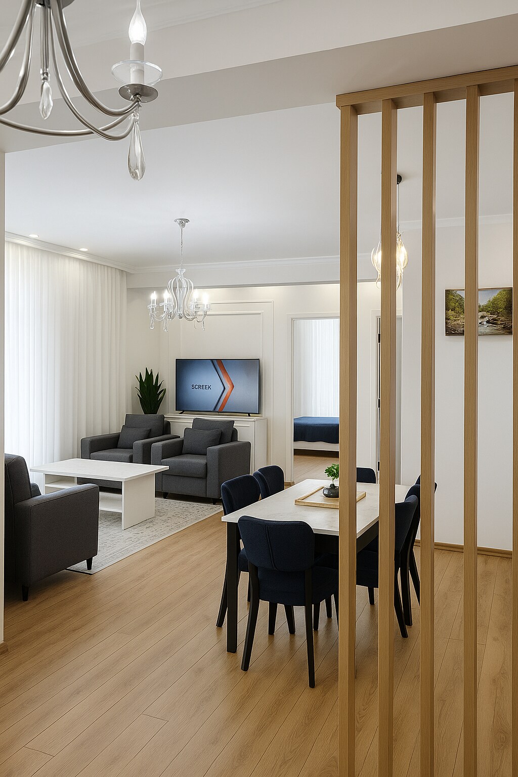 Luxury, elegant and spacious apartment – ideal for couples, families and groups seeking comfort, style and space. Prime location surrounded by shops, pharmacies and restaurants for maximum convenience. The bus stop directly in front of the building offers fast connections to the city center and the ✈️ airport (approx. 20 minutes). Air conditioning in the living room provides a perfect indoor climate throughout the apartment. Located 📍 on the 3rd floor (European 2nd floor) – 🚫🛗 No elevator.