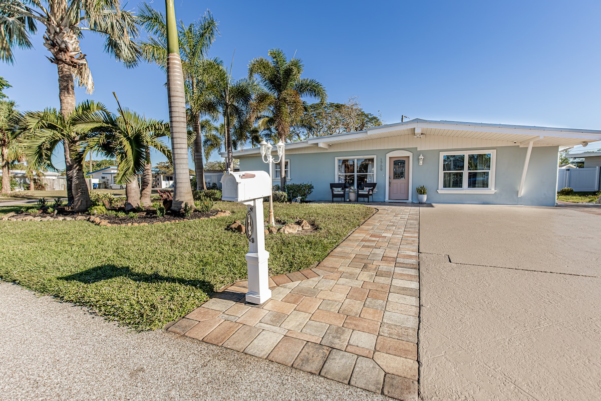 Relax with the family at this tropical oasis. Sunrise Villa sits in the corner of a quiet cul-de-sac, just a quarter mile from Palma Sola Bay and 5 miles from the quaint island of Anna Maria and its sandy white beaches. Enjoy the tropical backyard paradise and the abundance of restaurants, beaches, and entertainment in close proximity. Lounge by the pool, take a bike ride along the bay, take a short bike/car ride over to the island, or take a short car ride to downtown Bradenton.