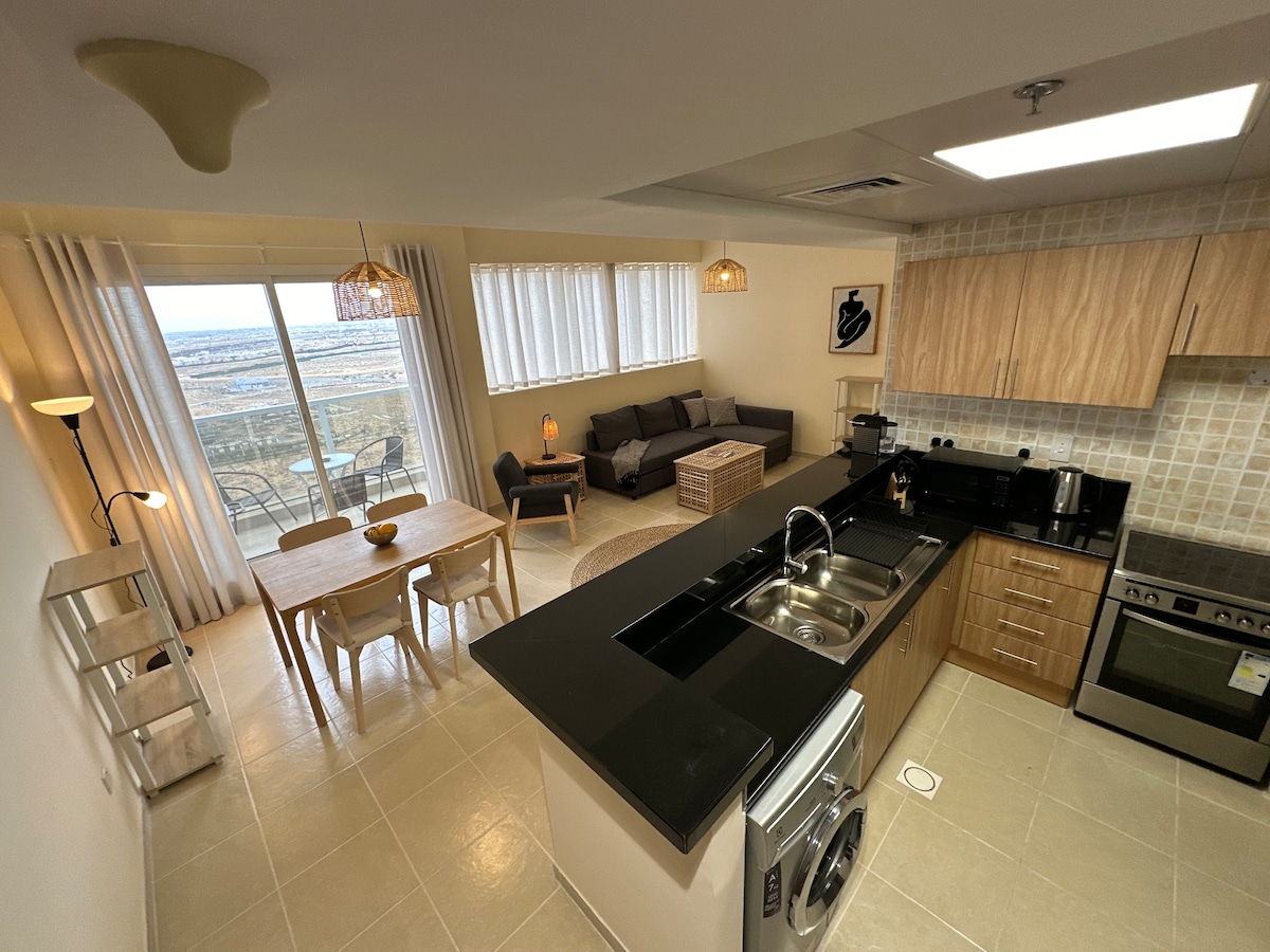 A home away from home! Experience comfort at Rukan Residence. This modern apartment features a private balcony, plush furnishings, high-speed Wi-Fi, a gourmet kitchen, and access to a gym and pool. Located just 10 minutes from top attractions like Global Village and Miracle Garden. 18 minutes from Dubai Mall premier shopping and dining, Rukan is the perfect base for both relaxation and adventure. Perfect for both leisure and business travelers, experience elevated living in the heart of it all.