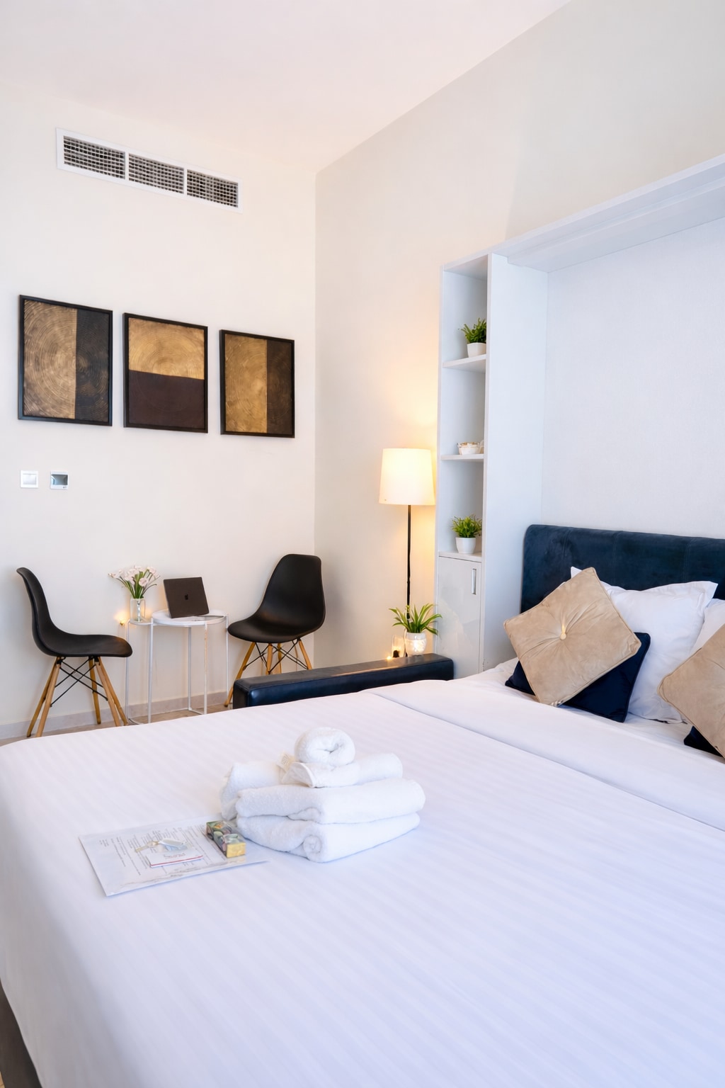 Experience contemporary living in our chic studio located in MAG City, a newly developed project by MAG. Thoughtfully designed for comfort, the apartment offers a hotel-like atmosphere with premium amenities. Nestled in a tranquil setting, you’ll enjoy a peaceful stay while being just a short drive from The Dubai Mall and other major attractions. Whether you’re here for a short visit or an extended stay, our studio provides the perfect blend of luxury and convenience in the heart of Dubai.