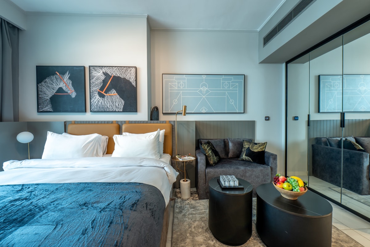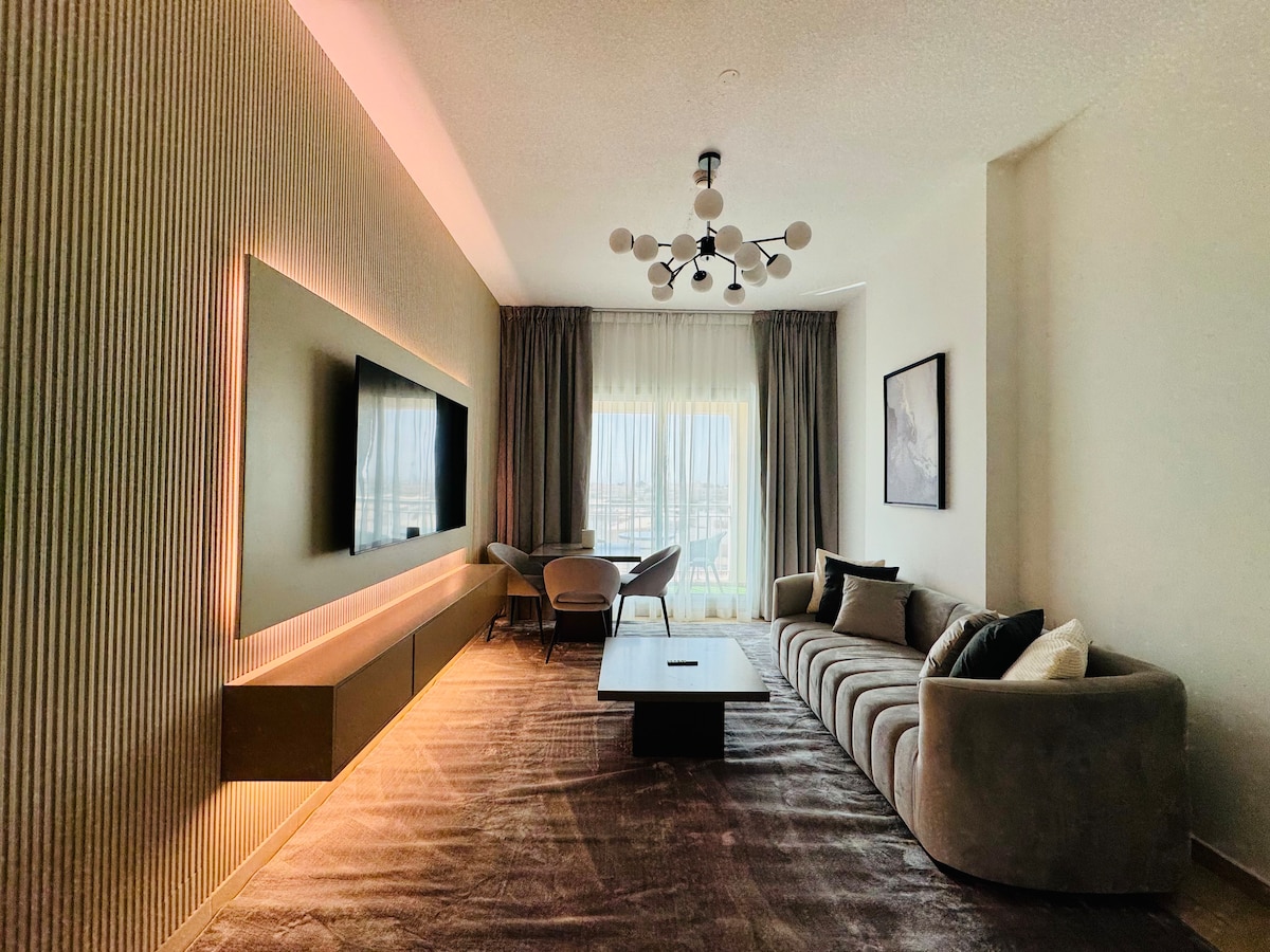 Experience a unique cultural retreat in The Polo Residence, Meydan City, just 10-15 minutes from Burj Khalifa. This 1-bedroom apartment blends ancient Arabic design with modern comfort, featuring handmade mango wood furniture, lush greenery, and thoughtful regional details. Enjoy Arabic coffee, henna art, or vinyl records on the turntable. With a king-size bedroom, cozy sofa, fast Wi-Fi, and premium streaming, it’s the perfect blend of authenticity, peace, and proximity to downtown Dubai.