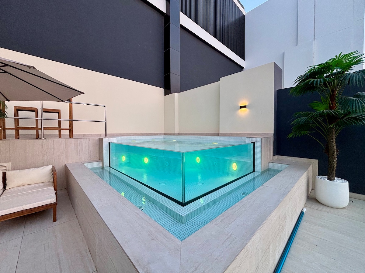 Perfectly suited for monthly & mid-term stays, this 2 BR Penthouse apartment offers a comfortable place to call home RELAX IN STYLE WITH YOUR VERY OWN PRIVATE POOL A stunning 2BR Penthouse apartment in Dubai featuring your own private pool on the balcony,NOT OVERLOOKED Perfect for solo travellers, nomads, couples, families, or groups of 3, 4, 5, 6 or 7 guests. Just 15 mins from Downtown, close to beaches, dining & attractions. Perfectly located central to Dubai for day trips and nights out.
