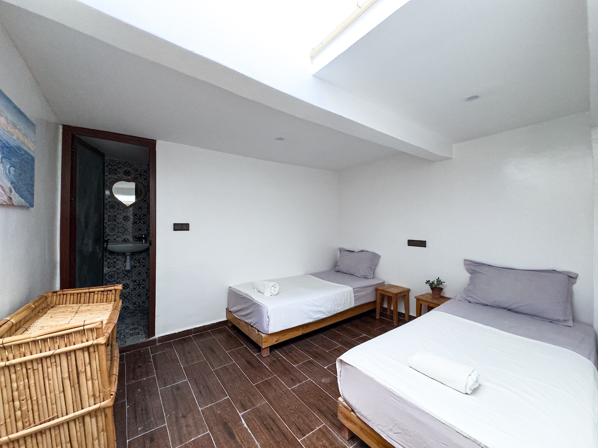 Cozy twin room inspired by the traditional charm of Fez, offering a peaceful and bright space to relax after a surf day. Located on the second floor of Nomazigh Surf House, guests can enjoy access to the chill terrace, co-working area and a rooftop with ocean view. Just a short walk to local bakery (1 min), Happy Tamraght restaurant (2 min), and Manzili Co-working (4 min). Close to popular surf spots like Devil’s Rock and Banana Point.