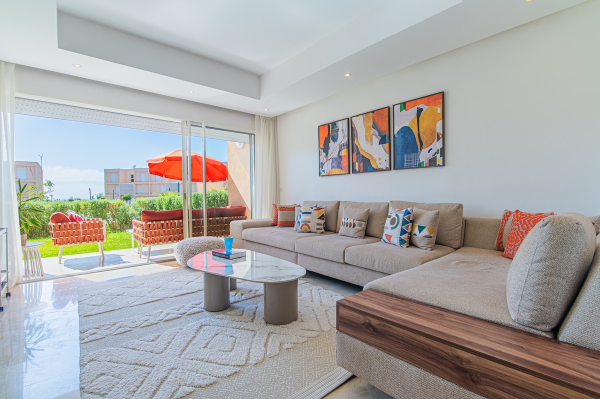 Enjoy a bright and cozy one-bedroom apartment with panoramic ocean and sunset views, located in the heart of Taghazout Bay. Perfect for couples, surfers, digital nomads or anyone looking for peace, comfort and quality time. • Ocean & sunset view from the balcony • 5 minutes walk to the beach • Pool, playground & football field inside the residence • Fast Wi-Fi • Secure gated community with 24/7 security You will enjoy the perfect mix between calm, ocean vibes, surf energy and comfort.