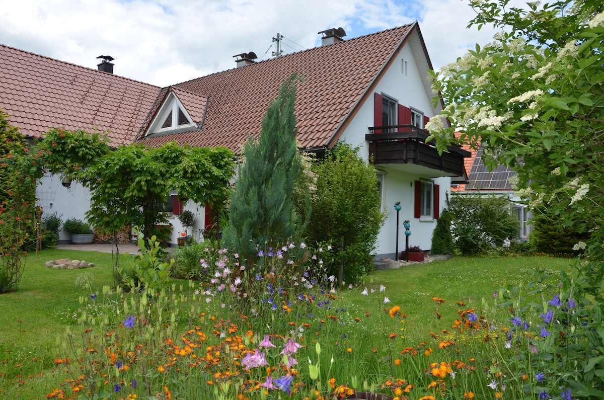 Welcome to our beautiful guest room in Petersthal am Rottachsee, between Kempten and Füssen, right by the Lake Constance-Königssee cycle path. A quiet place in beautiful nature. Our accommodation is perfect for couples or solo travelers.