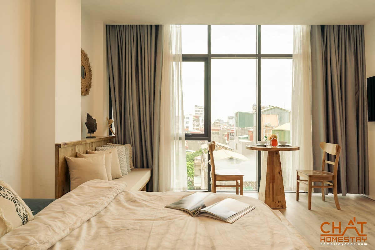 Enjoy Hanoi’s Old Quarter from a modern retreat just steps from the iconic TRAIN STREET. This apartment features a SUPER KING SIZE BED, A COMFORT SOFA, and luxury bathroom with shower and WOODEN BATH TUB. Cook in your PRIVATE KITCHEN and unwind with the 100-INCHES PROJECTOR and Wi-Fi. A LARGE SOUNDPROOF WINDOW offers lively street views, blending Hanoi’s charm with home comforts. Ideal for travelers seeking a unique and tranquility stay in the heart of the city.