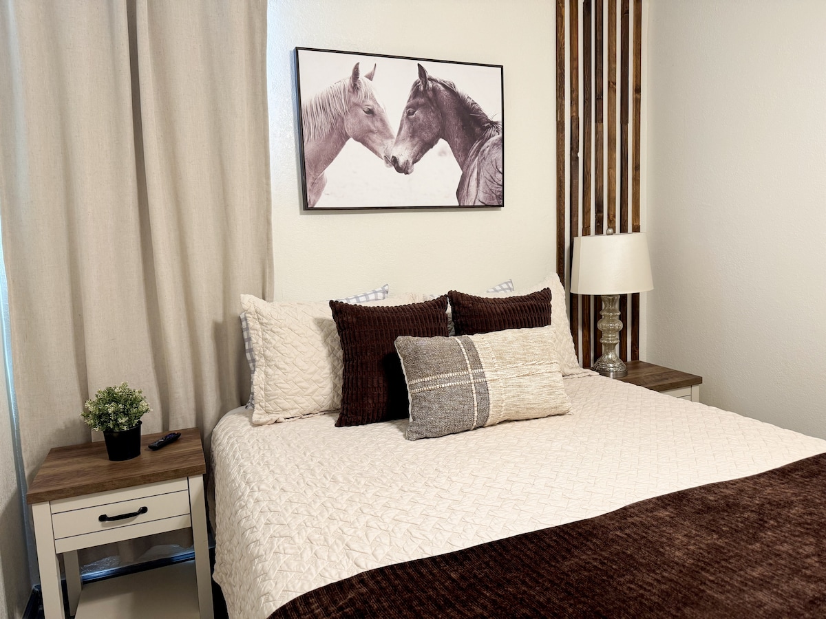Welcome to the Desert Retreat — a stylish, desert-themed studio in the heart of Downtown Yuma's Historic District. Steps from the Colorado River, top-rated restaurants, bars, and walkable attractions. Enjoy a king bed, sofa sleeper, fully stocked kitchen, reserved parking, and a private patio. Two bicycles included. Surrounded by vibrant local murals and culture — modern, impeccably clean, and everything you need for an unforgettable stay.