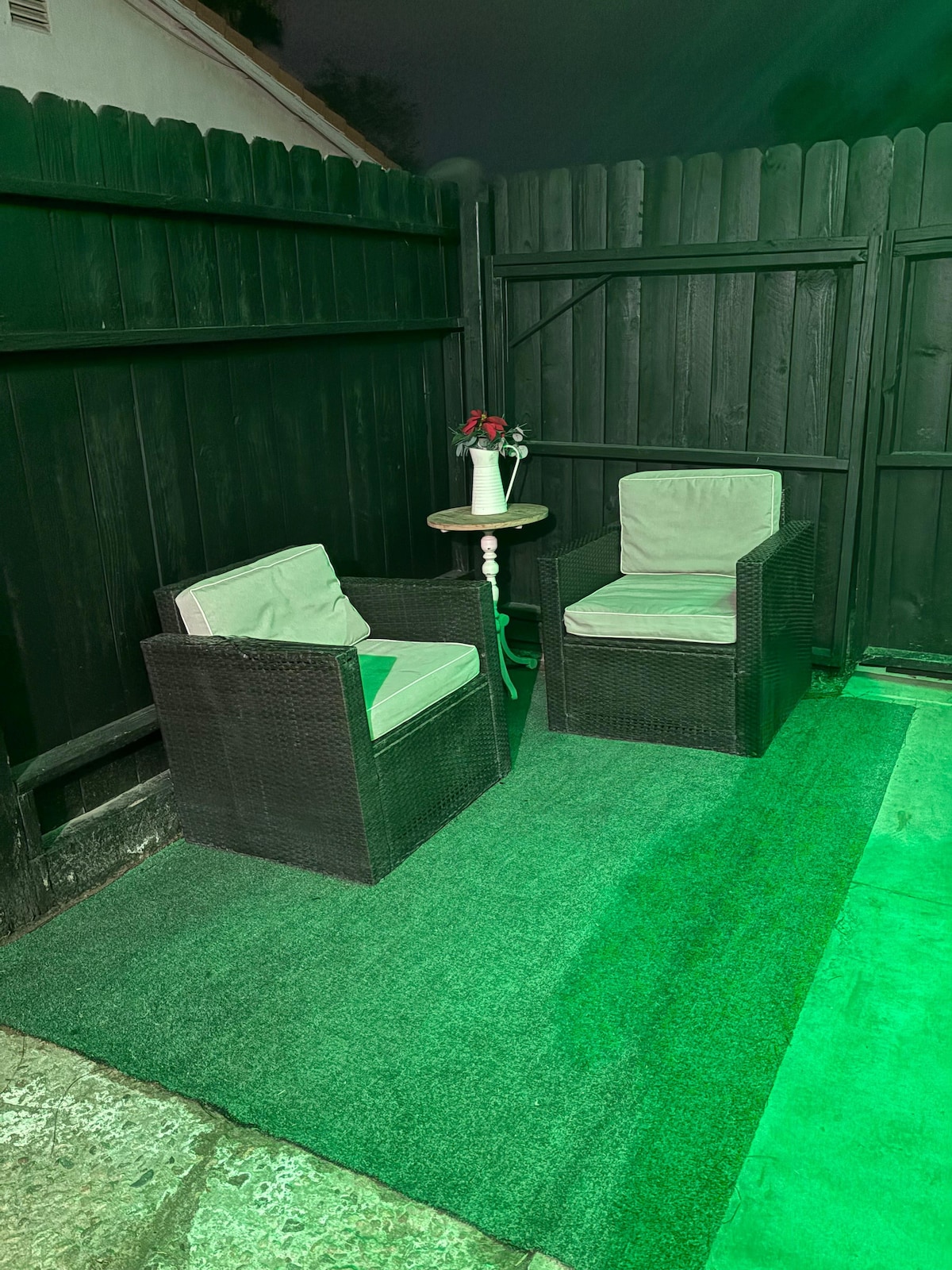Enjoy a stylish experience at this centrally-located place. Enter into an all fenced area and enjoy the nicely decorated apartment with private outdoor sitting/dining area and grill. Enjoy the privacy and the very best of a detail oriented furniture and amenities that feature a master bedroom with a king size comfortable bed, tile rain fall shower bathroom and an open space area that features a fully equipped kitchen, granite counter height dining, TV sofa/futon area, home office work station.