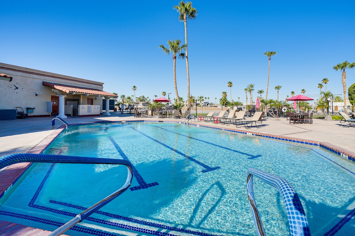Pet Friendly w/ Fee | Laid-Back Retirement Community | Golf & Shopping Nearby Calling all snowbirds and sun chasers: this Yuma vacation rental is the perfect place for your next Arizona adventure. Located in a well-appointed senior community, this 1-bedroom, 1-bathroom home offers plenty of amenities to fill the days and keep you fit! When you're not practicing your swing on the pickleball court or lounging poolside, head out to explore the area's Old West charm and interesting attractions.