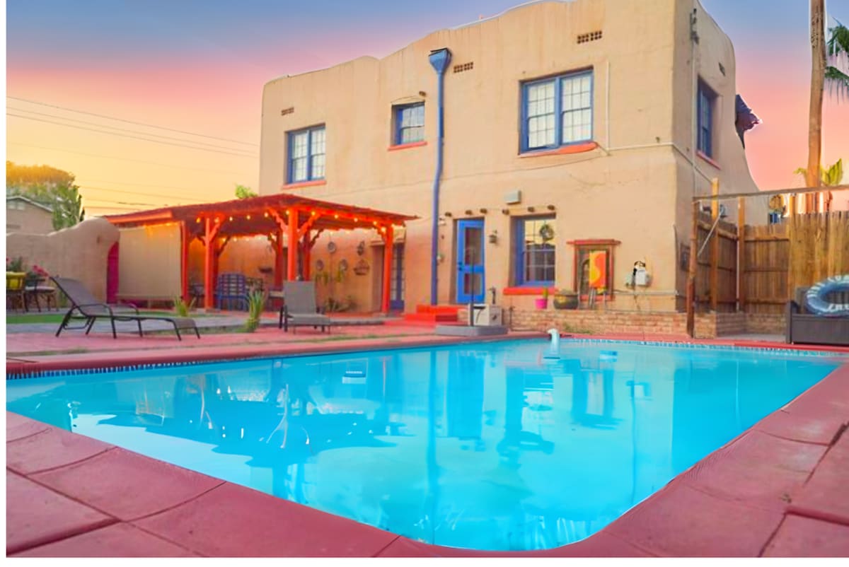 Beautiful and Unique Spanish-Style Home Since 1925, this stunning Spanish-style house has been part of Yuma, AZ’s rich history. Recently renovated, it features a vibrant, colorful design and a lush garden perfect for relaxing and spending time with your family. The home sits on a large lot, and the backyard is divided by a fence that separates it from a charming tiny house—also an Airbnb. Both homes are completely independent and do not share any spaces.