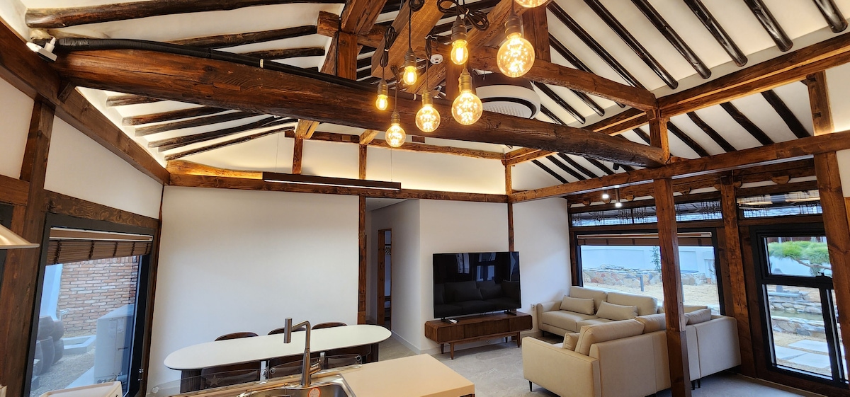 호메오 - 오래된 집의 새로운 숨결 90년 된 적산가옥이 현대적 감성으로 다시 태어났습니다. ‘호메오’에 머무는 당신의 마음을 힐링시켜 줍니다. 전주 웨리단길의 조용한 골목, 한 시대의 이야기를 품은 적산가옥이 지금은 단 하나의 온전한 쉼터가 되었습니다. 거실 & 다이닝 공간 고재, 유럽미장, 유리의 믹스 매치로 완성된 미니멀 구조 프라이빗 온수풀 & 마당 전통 한옥 마당에 마련된 자쿠지형 욕조 햇살 아래에서 즐기는 사계절 힐링 타임 침실 고요한 나무결과 천장 구조가 살아 있는 2층 구조 2개의 독립된 침실과 모던한 수면 공간 90년 된 적산가옥의 재해석 반려동물 동반 가능 (소형견 1마리 기준) 전용 온수풀 / 자쿠지 / 마당 공간 셀프 체크인, 무인 운영 대형TV, 블루투스 오디오, 네스프레소 머신 등 완비 반려동물과 함께하는 여행자에게 호메오는 반려동물과의 동행을 응원합니다. 조용한 마당, 미끄럼 없는 바닥, 프라이빗한 구조로 특별한 여행에 꼭 맞는 공간입니다.