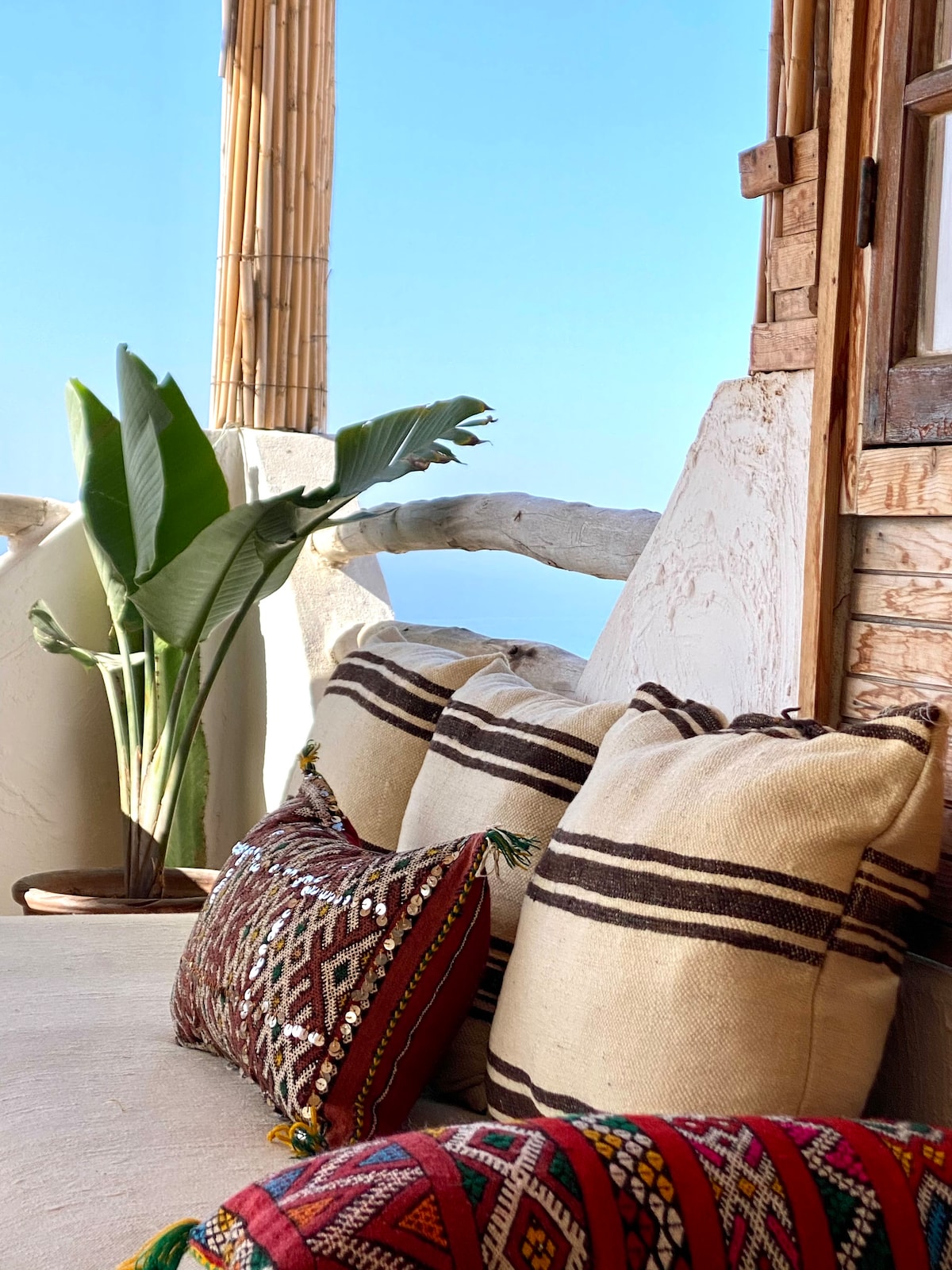 Tamraght has everything for a short stay whilst exploring Morocco or longer for your whole holiday. This private apartment is ideally and centrally located at the bottom of Tamraght; a 5-minute walk to the beach with surf conditions for all levels, and a walk round the corner to shops, cafes & restaurants. The light, open plan living area & private terrace are perfect for relaxing, and you also have access to the large (shared) top roof terrace with sun loungers and sunset views over the ocean.