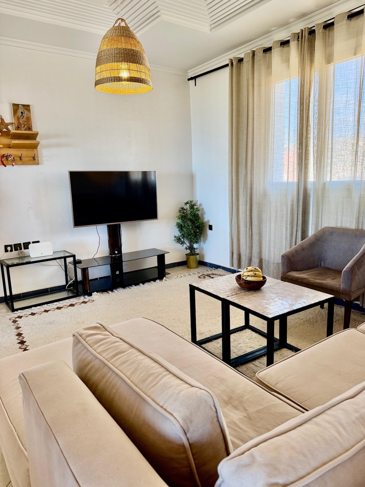 Wake up to the sound of waves in this bright, cozy apartment just minutes from Imsouane beach. Perfect for surfers, couples, or friends wanting to relax and enjoy the ocean breeze. Highlights: • Rooftop terrace with sea view & sunset vibes • Comfy bedrooms with fresh linens • Equipped kitchen + coffee machine • Smart TV & Netflix • Fast fiber Wi-Fi • Secure building with cameras Catch waves at Cathedral & The Bay or simply unwind under the Moroccan sun – your perfect Imsouane escape awaits.