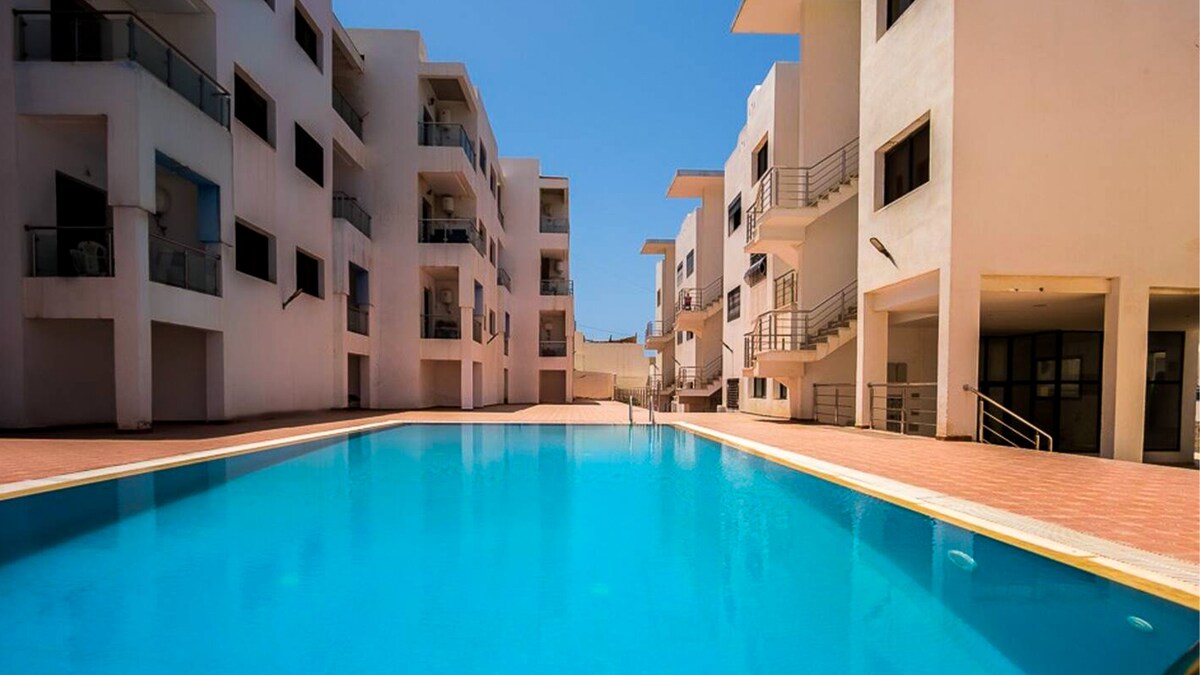 Cet appartement lumineux allie design épuré et confort haut de gamme, avec une vue sur la piscine depuis sa terrasse. Le jacuzzi privé vous offre des moments de détente inoubliables, entre bains chauds sous le soleil et soirées étoilées. Idéal pour les couples, les amis ou les voyageurs en quête de surf ou Yoga, farniente et luxe. À proximité des spots de surf et des cafés branchés, vivez une expérience 100% Taghazout : paysages magnifiques, calme absolu et couchers de soleil magiques.