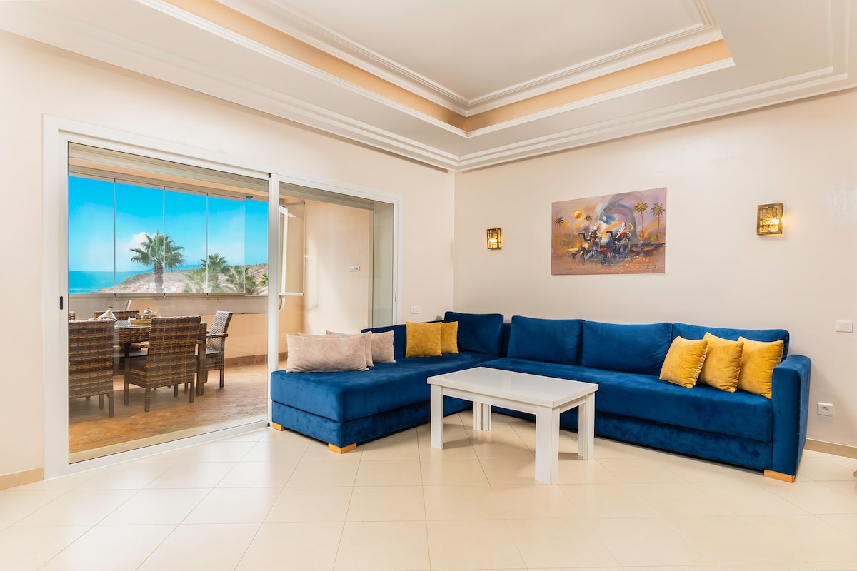 Wake up to the sound of waves in a special two-bedroom apartment, coffee in hand, standing on your balcony as the ocean stretches endlessly before you 🌊 The panoramic view surrounds you, and just 10 steps below, the beach is yours, with private access for barefoot swims at sunrise. In the heart of Taghazout, cafés, surf spots, and local favorites are all a short walk away. Breathe in the calm, the salt air, the feeling of arrival. This is a special place, and exactly what you need ✨