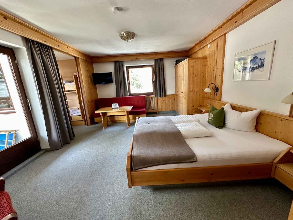 Unsere perfekten Zimmer für Familien mit 1-3 Kindern oder Schnarcher. 2 getrennte Schlafräume bieten Platz für 2-5 Personen. Hier finden Sie die jeweiligen Details zur Ausstattung: 106: Teppichboden, Badewanne, 3. Bett 107: Teppichboden, Badewanne, 3. + 4. Bett 108: Teppichboden, Dusche, 3. Bett, Stockbett, Schlafcoach 302: Holzboden, Dusche, Schlafcouch (1,20 m breit)