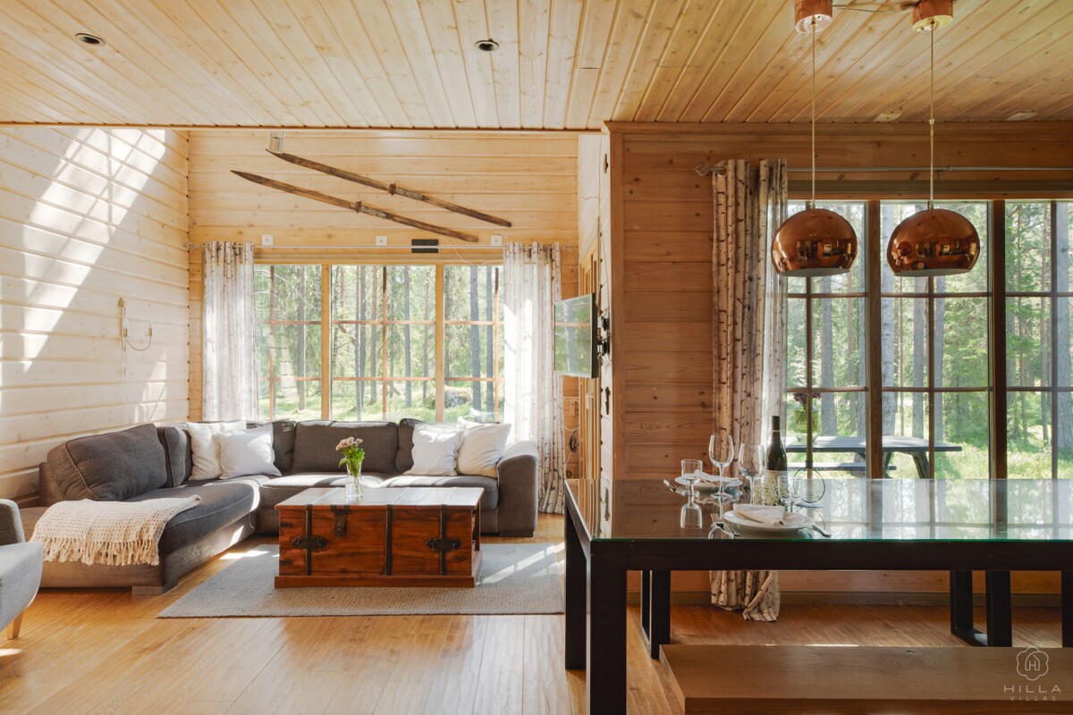 Levin Villa Repo is a modern and stylish log cabin with two bedrooms, completed in December 2023. It spans 80m² and is located in a peaceful setting, directly adjacent to forest and cross-country ski trails. The villa's large windows offer stunning panoramic views of the enchanting nature and forest landscapes. The villa includes a carport and ample parking space in close proximity. Additionally, there is a shared grill hut in the villa village. Free Wi-Fi is available. Ig: levin.villarepo