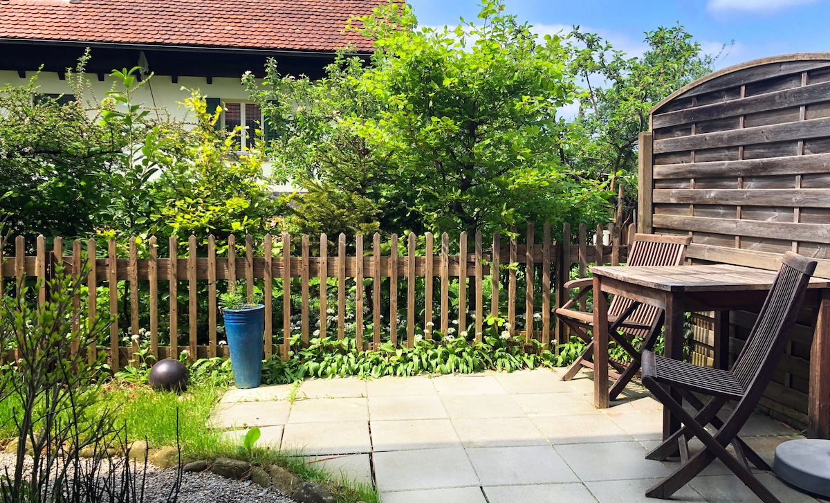 带车库的花园公寓。安静、中心、动物友好