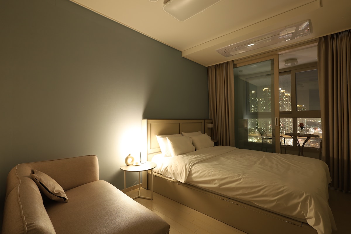 Sunstay ๐ โ Stunning ocean & sunset view โ A new building built in 2024 โ Big cafe table โ Beam projector โ 50-inch Google Smart TV โ SK Broadband Btv โ Free Netflix, Youtube Premium (host account) โ Electric kettle, toaster โ Various drinking glasses (sake/beer/soju/wine/champagne) and kitchen utensils โ Washing machine, heat drying rack โ Make-up table, straight/curling iron โ English chat, phone call ok โ Immigration support (confirmation letter of accommodation, rental contract) available