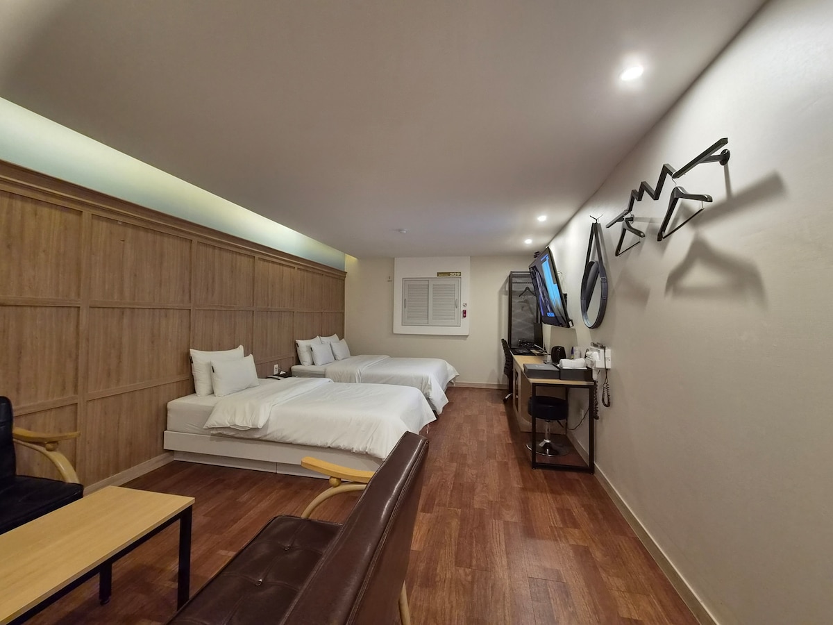 안녕하세요! 신규 오픈 했습니다 무엇보다 청결에 신경 쓰겠습니다 침구류 매일매일 세탁-건조-소독 하여 교체합니다 믿고 안심하셔도 돼요😊 카페와 호텔에 온 것처럼 편안하고 고급스러운 분위기를 강조하고자 쾌적한 침구류, 인테리어에 집중하였습니다 거실 공간은 실제로 좁지 않습니다❗️ 🤍대형 100인치 스크린 빔프로젝터 Ott 이용가능 🤍 🤍생수 500ml x 2 제공 📍넷플릭스 유튜브 프리미엄 제공 저의 숙소에서 편안한 잠자리와 CD 음악을 들으며 커피 한 잔의 여유, 선명한 빔프로젝터(번거롭게 게스트님이 설치X)로 대형 홈씨네마를 즐기시고 이쁜 추억 쌓으셨으면 좋겠습니다. 여유롭게 늦잠을 주무셔도 좋습니다! 퇴실시간은 오후1시입니다. 주차 무료!! 자비를 부담하여 주차 걱정 해결해 드리겠습니다 ❗️저의 프로필을 눌러보시면 다른숙소도 준비되어 있습니다 모두 호스트 본인이 정성을 다해 최대한 신경 쓰며 운영합니다 놀러오세요🩵