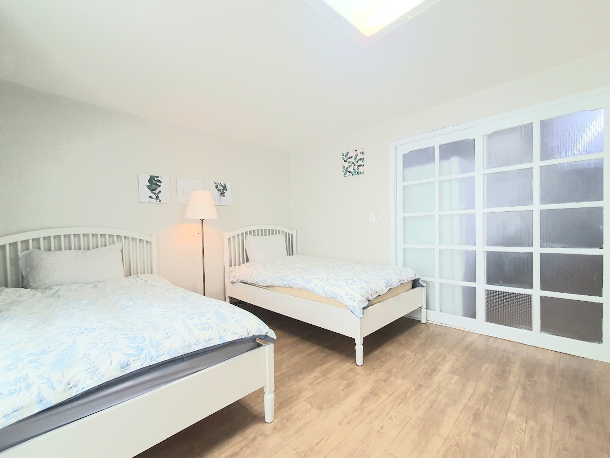 신규 오픈한 가족형 3룸 스테이로 최대 8인까지 이용 가능합니다. 공항철도 운서역 도보 10분 거리에 있어 인천공항 접근성이 뛰어나며, 인스파이어·파라다이스 리조트와 가까워 공연·페스티벌 관람 후 휴식하기 좋습니다. 건물 앞 무료 주차(최대 3대)와 엘리베이터가 있어 이동이 편리하고, 카페거리 중심에 위치해 다양한 맛집과 카페를 즐길 수 있습니다. - 침실 1 : 슈퍼싱글 침대 2개 - 침실 2 : 퀸사이즈 침대 - 침실 3 : 퀸사이즈 침대 최대 8인까지 까지 가능하고 6인 기준으로 최적화된 공간입니다. 6인 이상 숙박 시 토퍼를 제공합니다. [편의시설] - 주방: 전자레인지, 전기포트, 커피머신, 가스렌지, 냉장고, 전기밥솥 냉온수기 완비 - 욕실 2개: 비데/샴푸/컨디셔너/바디워시/핸드워시/ 호텔식 40수 타올 제공/드라이기2개/고데기 - 거실: 모던한 소파와 6~8인용 원목 테이블/의자, 넷플릭스, 유튜브 시청 가능 - 세탁기, 건조기 사용가능