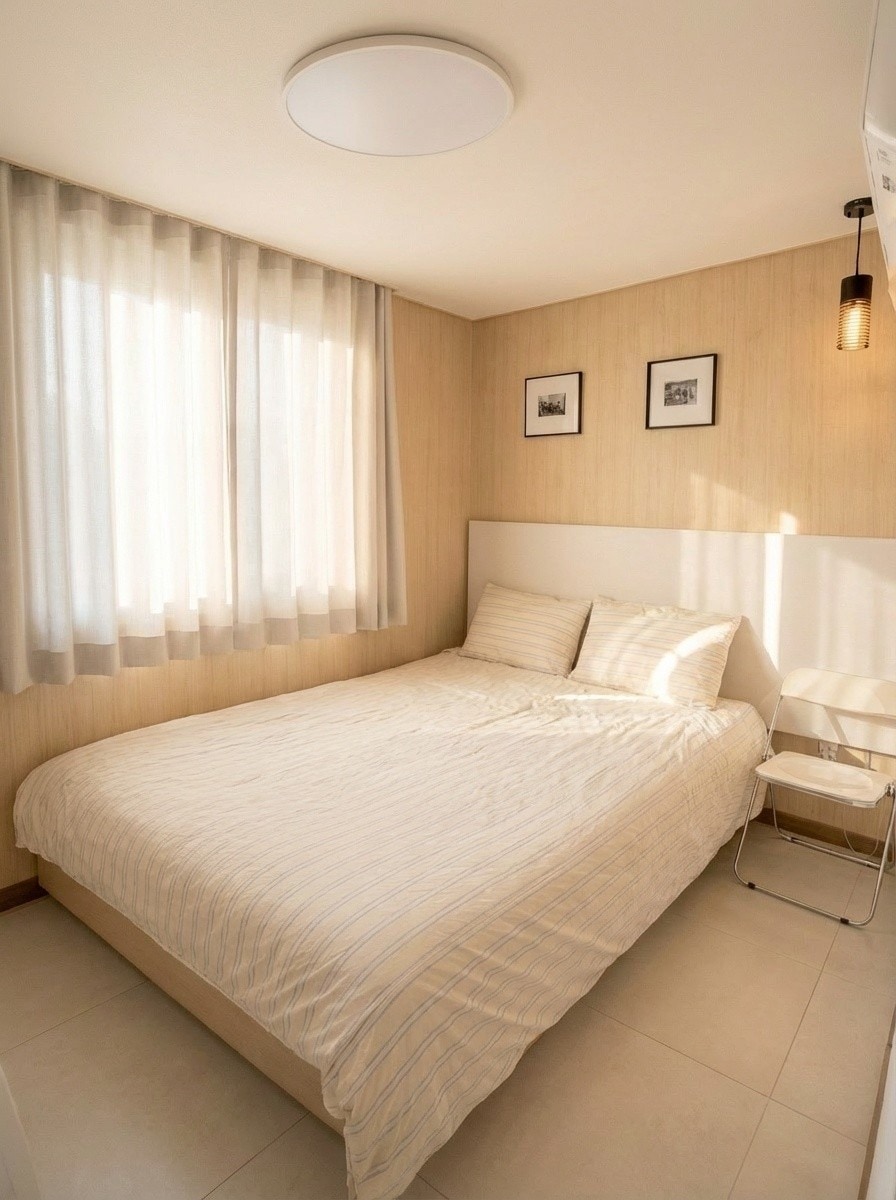 - 房间5.5坪,床135*200,书桌1200*1800,可以保管行李 - 具备可办公、可做饭的简单餐具,智能电视 50 英寸 - Wifi(5G), 大衣柜, 大冰箱, 洗衣机, 晾衣架, 吹风机, 毛巾, 纸巾, 水 收费停车 洗发水、沐浴露、护发素、香皂 - 从仁川机场到宿舍正门乘坐机场巴士时56分钟(包括6分钟步行) - 从宿舍可以走着去的地方 大创(6分钟),OLIVE YOUNG(3分钟),时代广场(3分钟),汗蒸房(6分钟) -从宿舍坐地铁去的地方 (附近有 1 号线永登浦站、2 号线文来站、5 号线永登浦市场站) 东大门 DDP(41 分钟),汝矣岛汉江公园(21 分钟),清溪川(41 分钟),景福宫(39 分钟) 弘益大学入口站(24分钟),北村韩屋村(41分钟),明洞(36分钟),圣水洞(47分钟) 文来洞(12分钟),永登浦站是KTX停车站,去釜山等地方很方便。 清晨感受着从窗户照进来的温暖阳光 晚上坐在房间的窗边享受时代广场的夜景