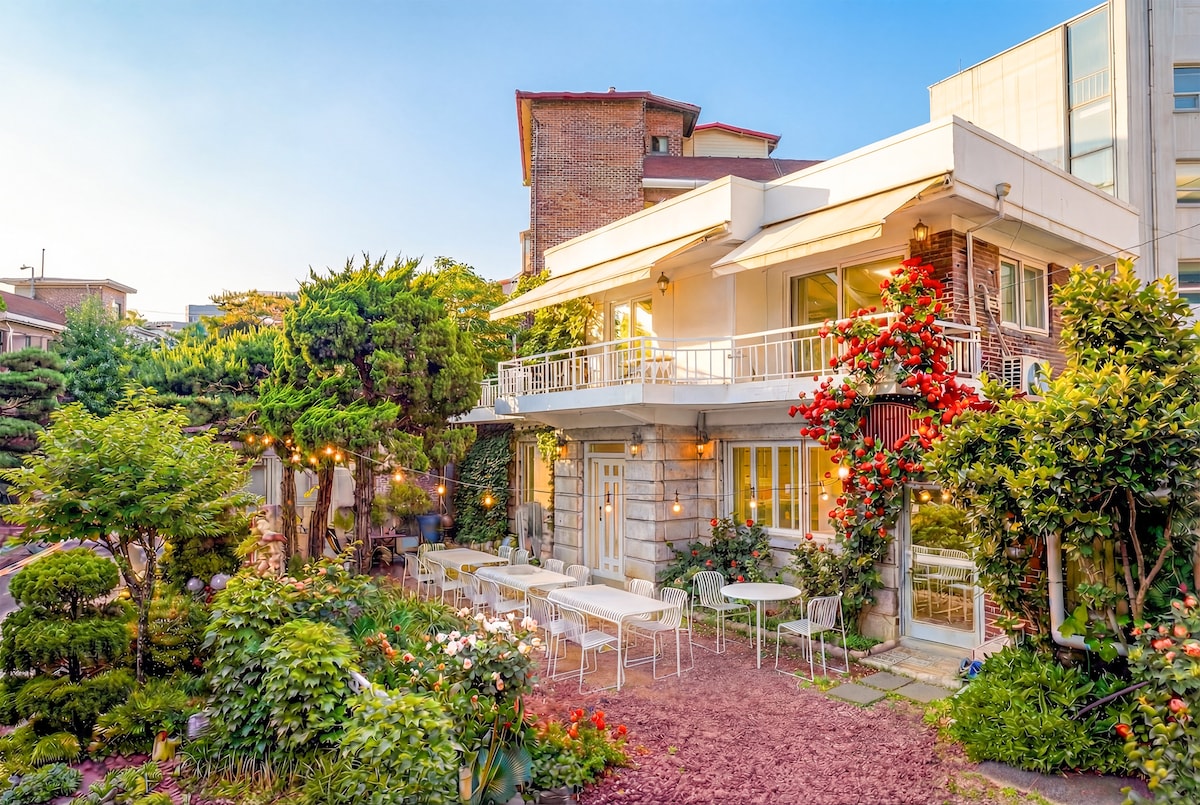 For large groups, contact us directly. Nestled within the heart of the bustling urban landscape lies a hidden gem, a magnificent two-story house enveloped by a secret garden of unparalleled beauty. This urban oasis stands as a testament to serenity and seclusion, providing a haven of tranquility mere steps away from the metro station Hansung University(Line04) which connects directly to Myeongdong & Seoul station, and tons of cafes and restaurants and historical heritages.