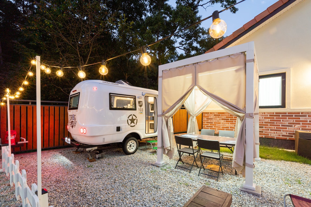 🎈🎈막바지, 얼리버드 할인 이벤트 안내🎈🎈 【입실일 28일에 임박하거나 1개월보다 미리 예약시 10%할인을 해드립니다. 👉 할인은 예약 시점에 자동 적용되어 결제 금액에 바로 반영됩니다. 반려동물과 함께 힐링을 즐기고, 찜질방 사우나로 일상의 피로를 풀어주는 가평 포시즌 애견 글램핑 카라반입니다. *본 숙소의 객실은 카라반1(개별 BBQ)입니다. 아래에서 해당 객실의 이용안내를 확인해주세요. *추가 문의사항은 프로필의 연락처로 문의바랍니다.