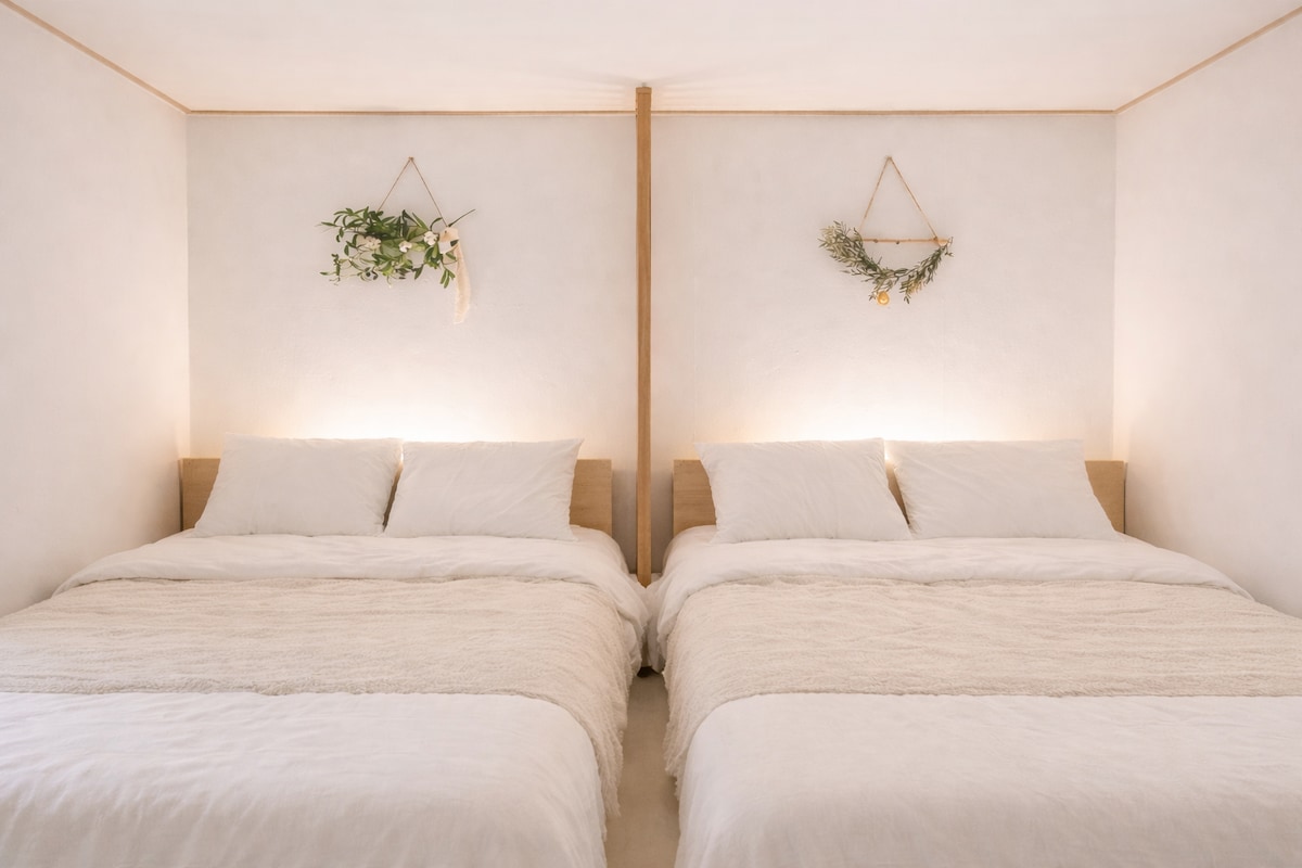 A quiet hanok nestled in the winding alleys of Gye-dong, facing a small garden. Set along a curved path, the house gently draws you inward. Designed for two, it offers a hinoki sauna and a selection of herbal teas to prepare at your own pace — including sanghwa cha, a traditional Korean blend known for its warming and restorative qualities. Here, doing nothing is enough — just breathe, and stay with the stillness.