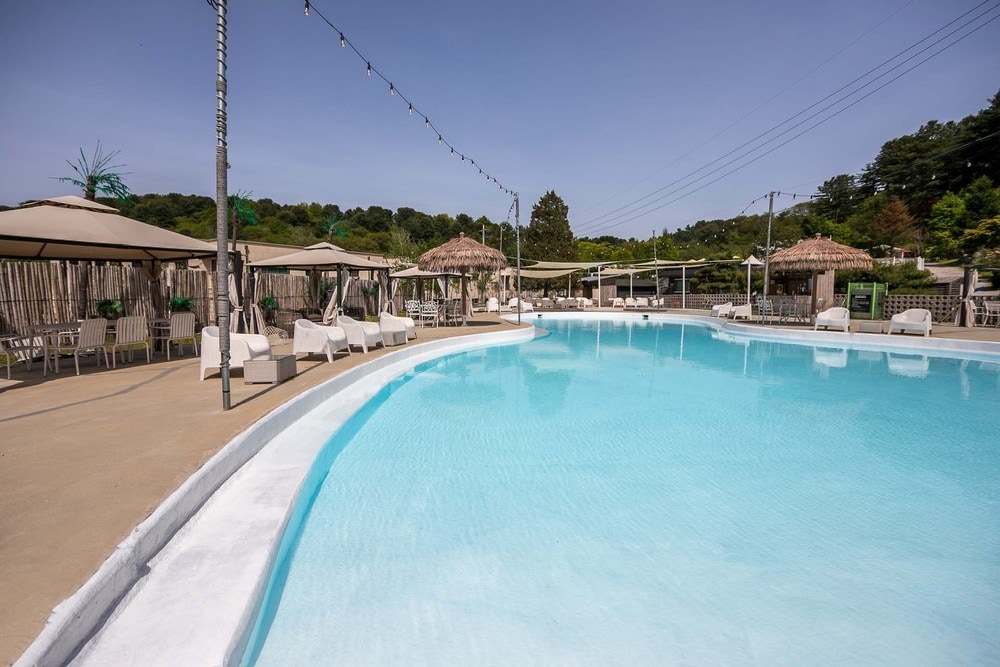 POOLSIDE is a campground with a 8-feet deep diving pool and 9 camping sites. Renting tents and other camping equipment is available. Good for BBQ, camp fire and pool party. For individual camp site reservations, use 캠핏, a camping app in Korea.
